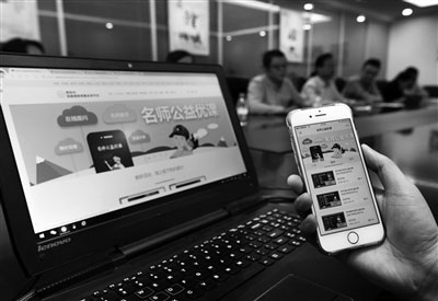 學(xué)生可以用電腦或手機(jī)收看名師課程 本報(bào)記者 馬昭 攝